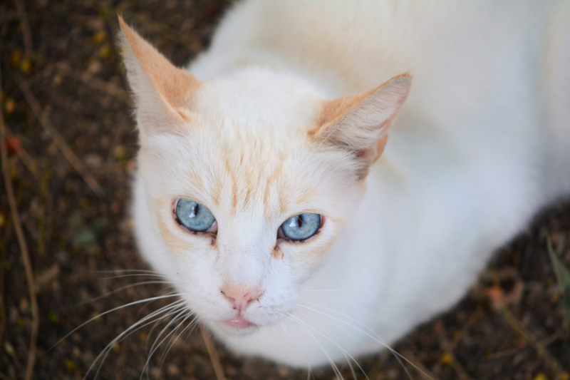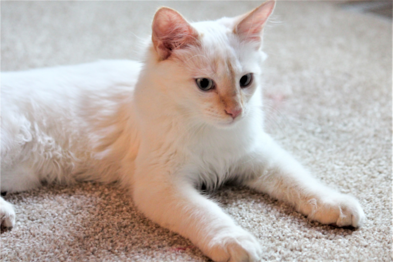 Overview: Large, short-medium furred flame-point tom with broad shoulders and deep blue eyes.